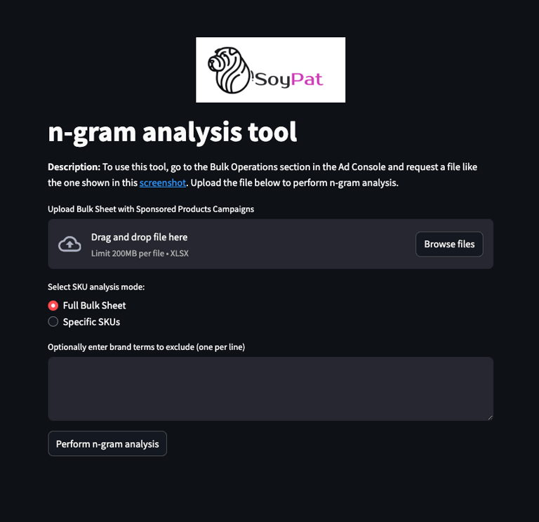 One of the tools I love using because of the valuable insights it unlocks quickly and effortlessly is an n-gram analysis tool for Sponsored Products campaigns. I adapted it for ease of use; it processes account-level and SKU-level data to reveal key trends and performance insights. This scrappy yet effective tool is perfect for operators looking to optimize their campaigns without needing expensive software or complex setups. Give it a try and see how it can simplify your analysis while driving better results.